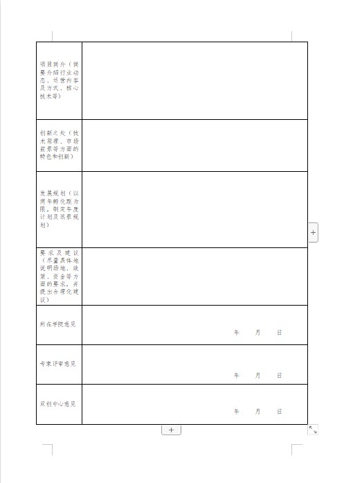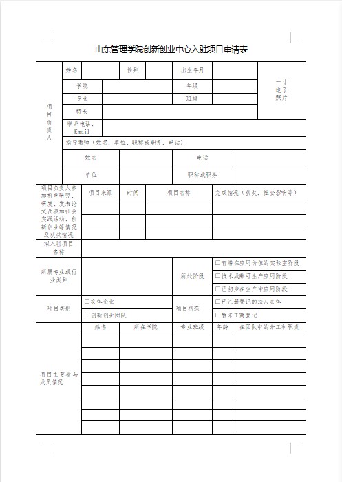 皇冠333体育APP创新创业中心入驻项目申请表